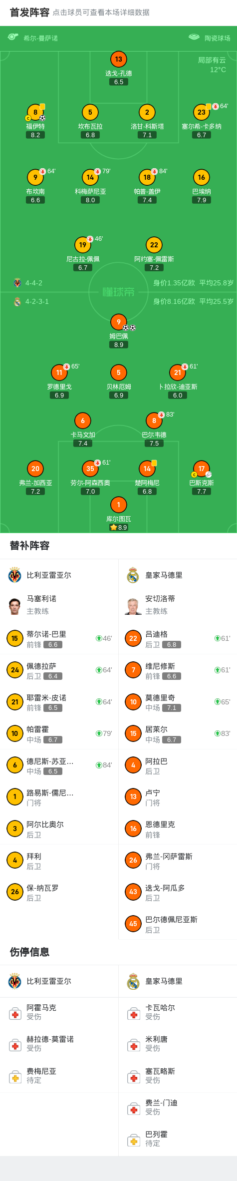 在这场西甲第28轮的比赛中,皇家马德里客场挑战比利亚雷亚尔,双方实力对比激烈,比赛一开始就展现出了高水平的对抗。比赛进行到第8分钟,比利亚雷亚尔利用一次前场定位球机会,福伊特在门前抢点破门,为主队取得领先。这个失球让皇马球员们警醒起来,他们开始积极寻找进攻机会。