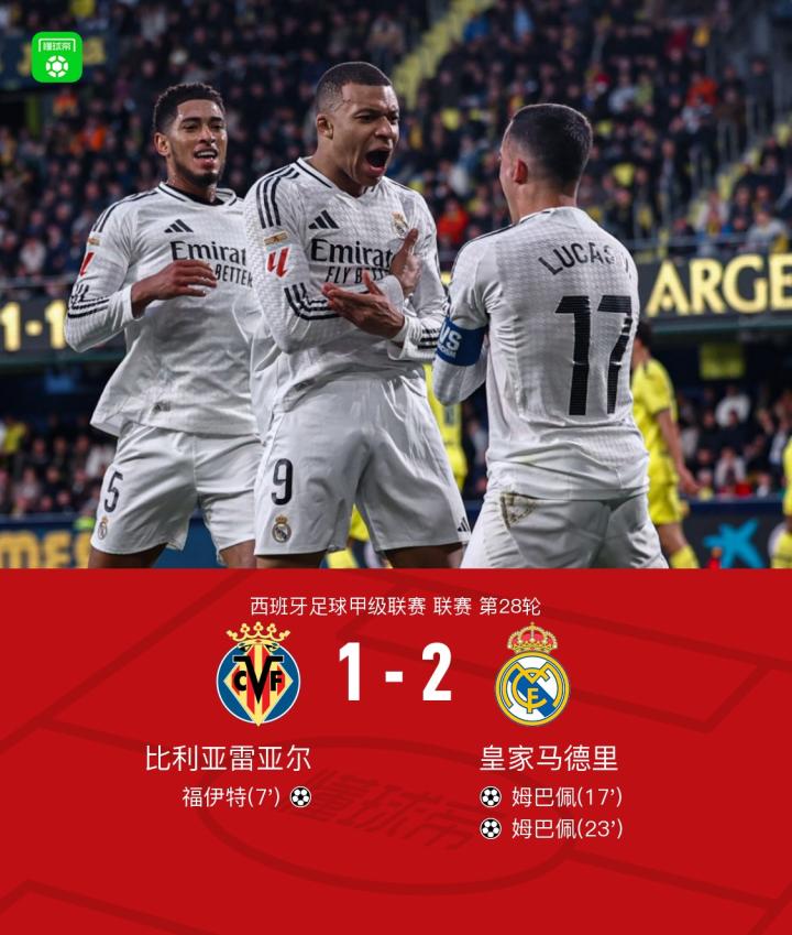 最终,皇家马德里客场2-1逆转比利亚雷亚尔,取得关键的胜利。这场胜利不仅让球队在积分榜上有所提升,更重要的是增强了球员们的信心和士气。姆巴佩的帽子戏法尤其引人瞩目,他的进球表现成为全场焦点,为球队的胜利立下了汗马功劳。
